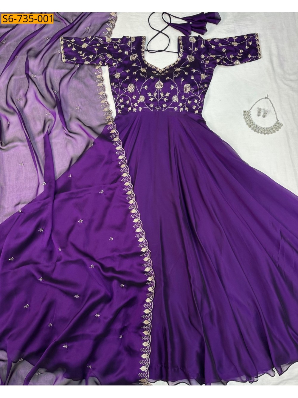 - Satin Chiffon Gown with Duppata Set