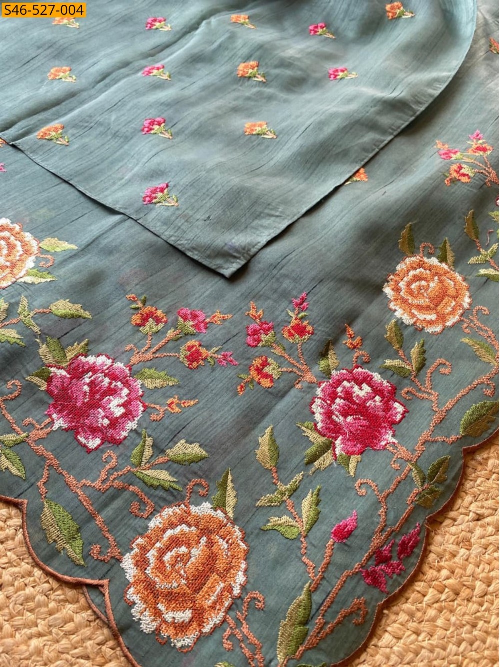 - Floral embroidery butta all over the body