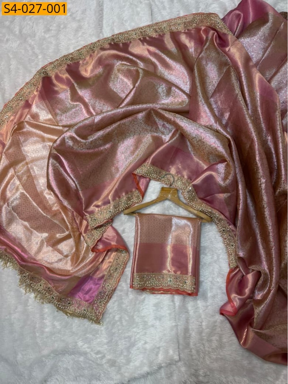 Peach Fancy Banarasi Soft Kanchi Tissue Silk Saree