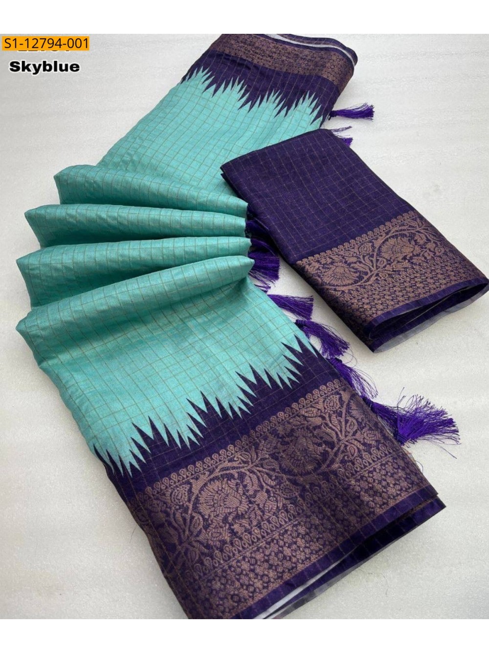 - Checked weaving Design allover the saree