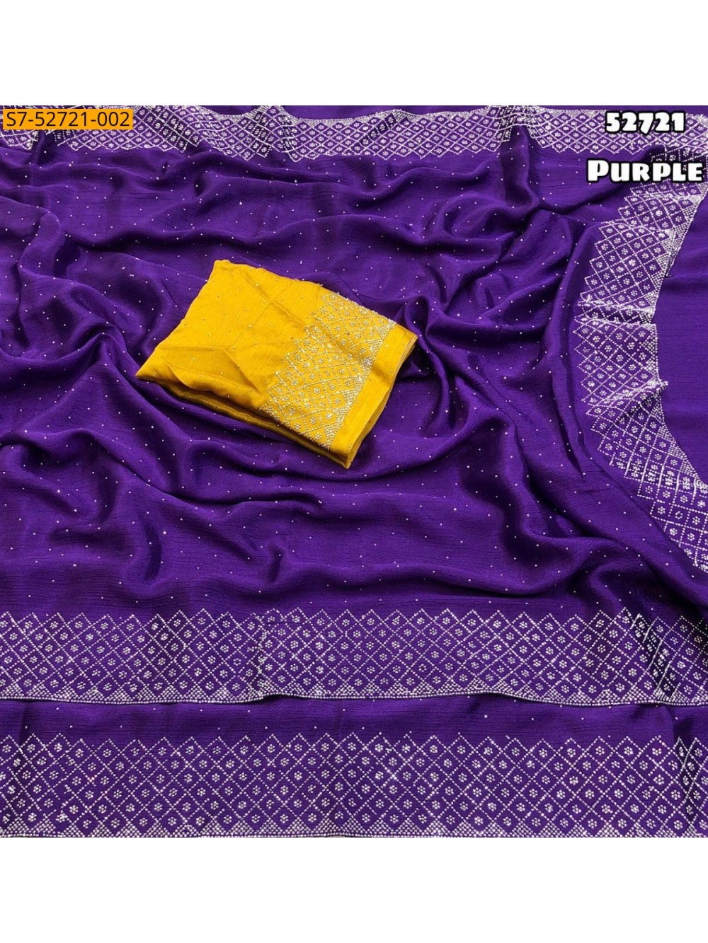 Purple Soft chinnon silk siroski work saree