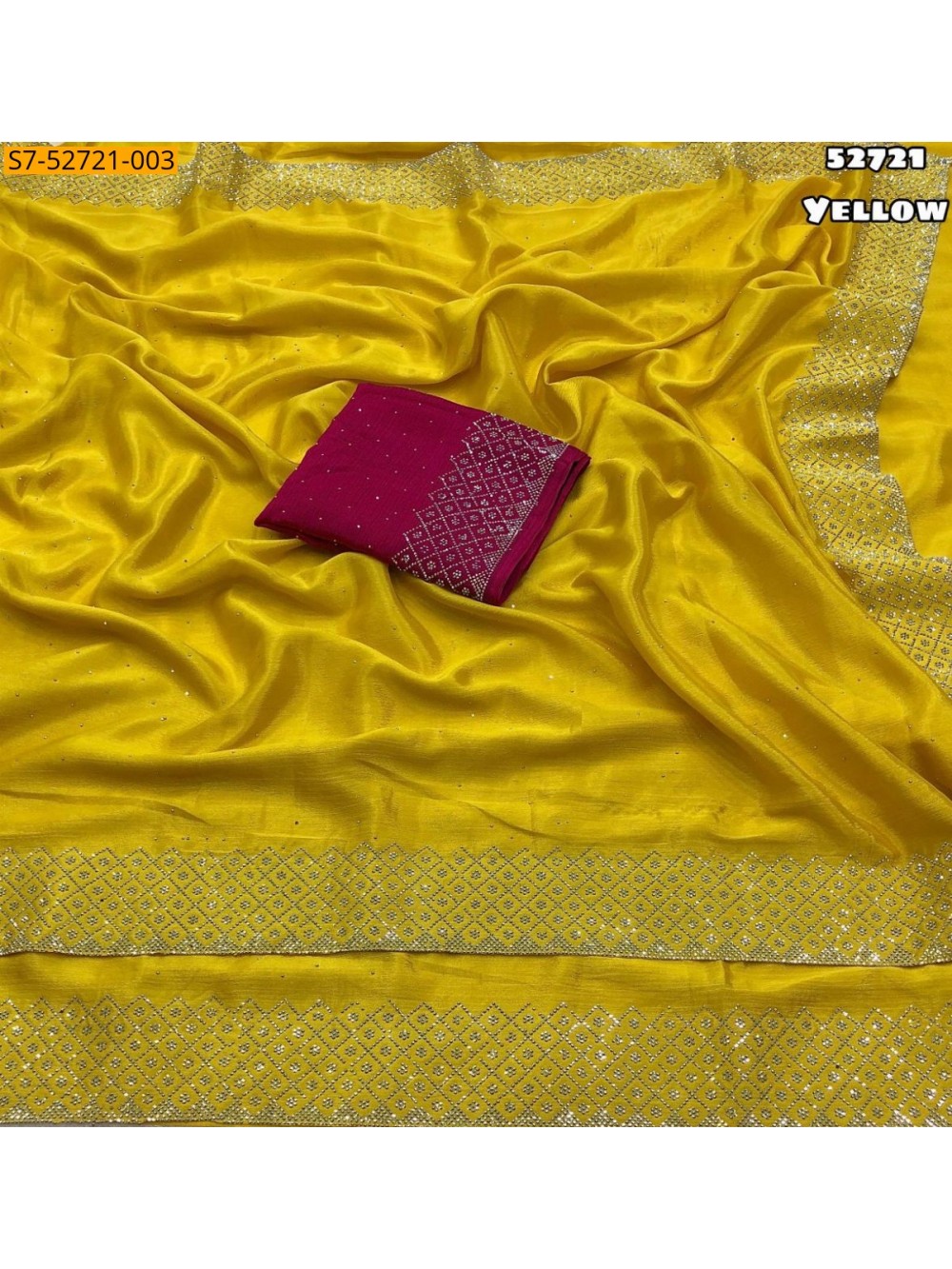 Yellow Soft chinnon silk siroski work saree