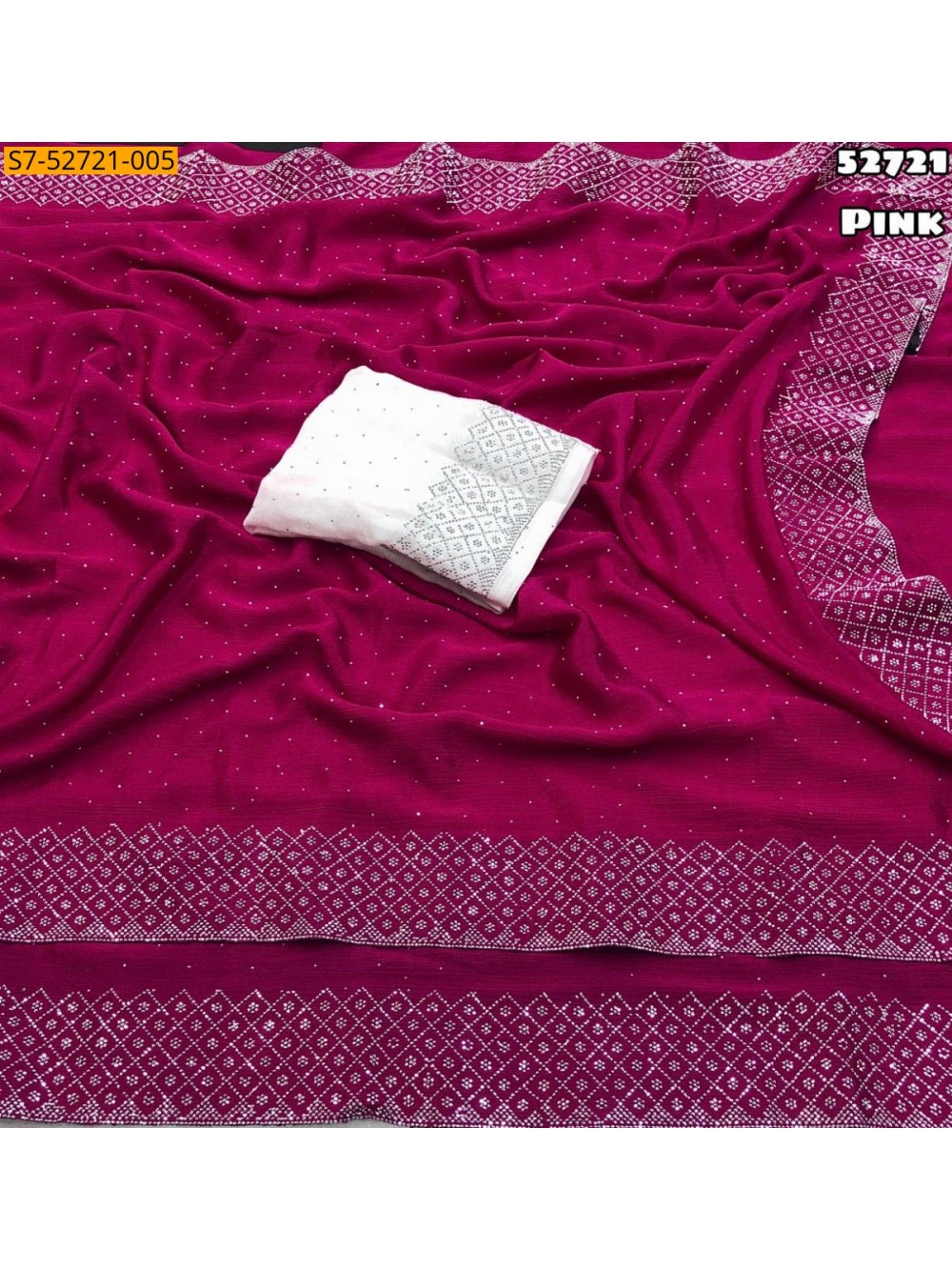 Pink Soft chinnon silk siroski work saree