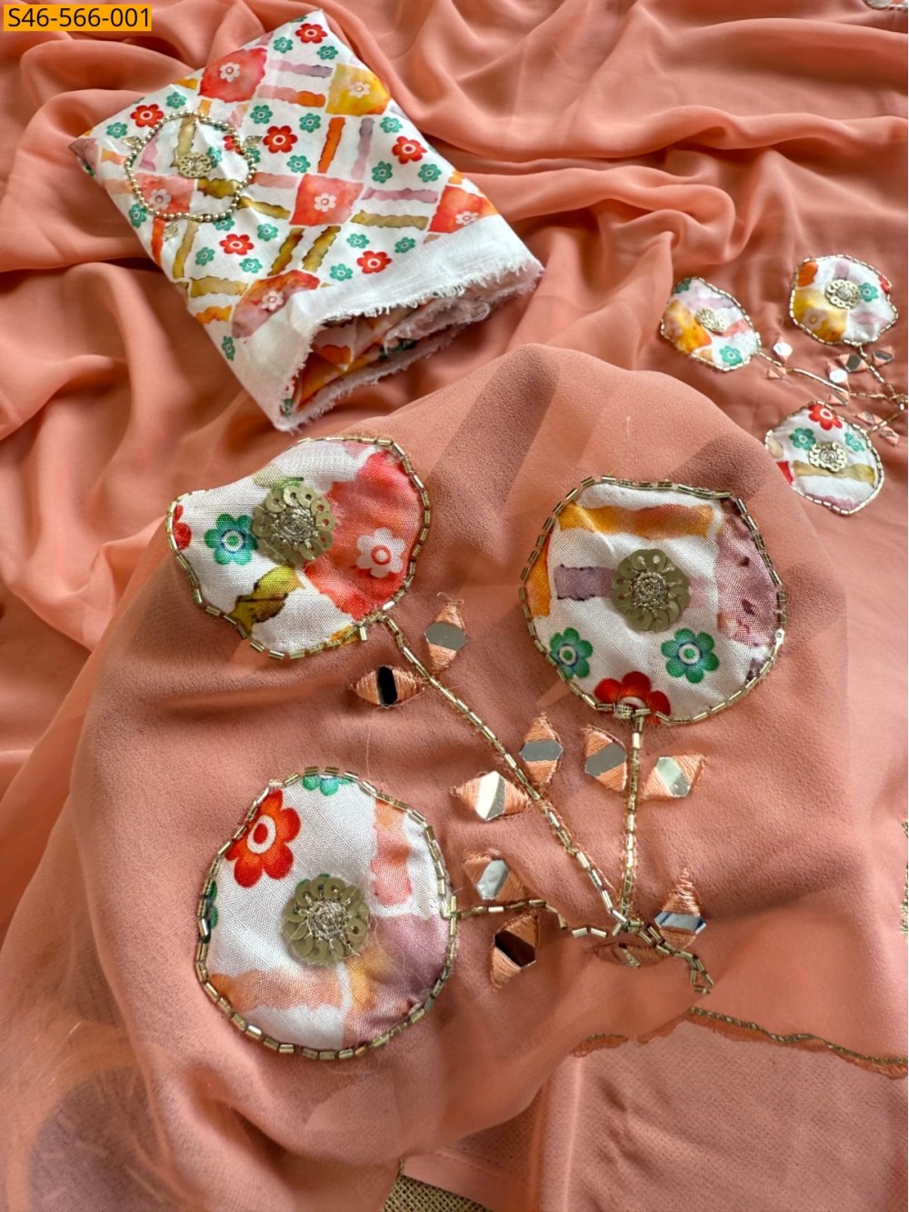 - Patchwork Design all over the saree