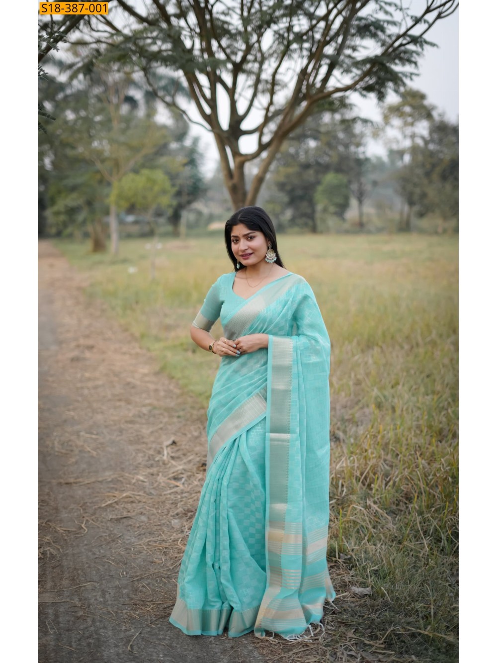 - Zari Weaving checks pattern With color shaded box pattern allover the saree