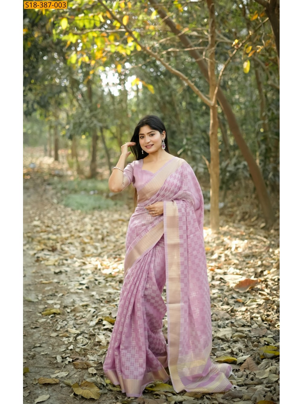 - Zari Weaving checks pattern With color shaded box pattern allover the saree