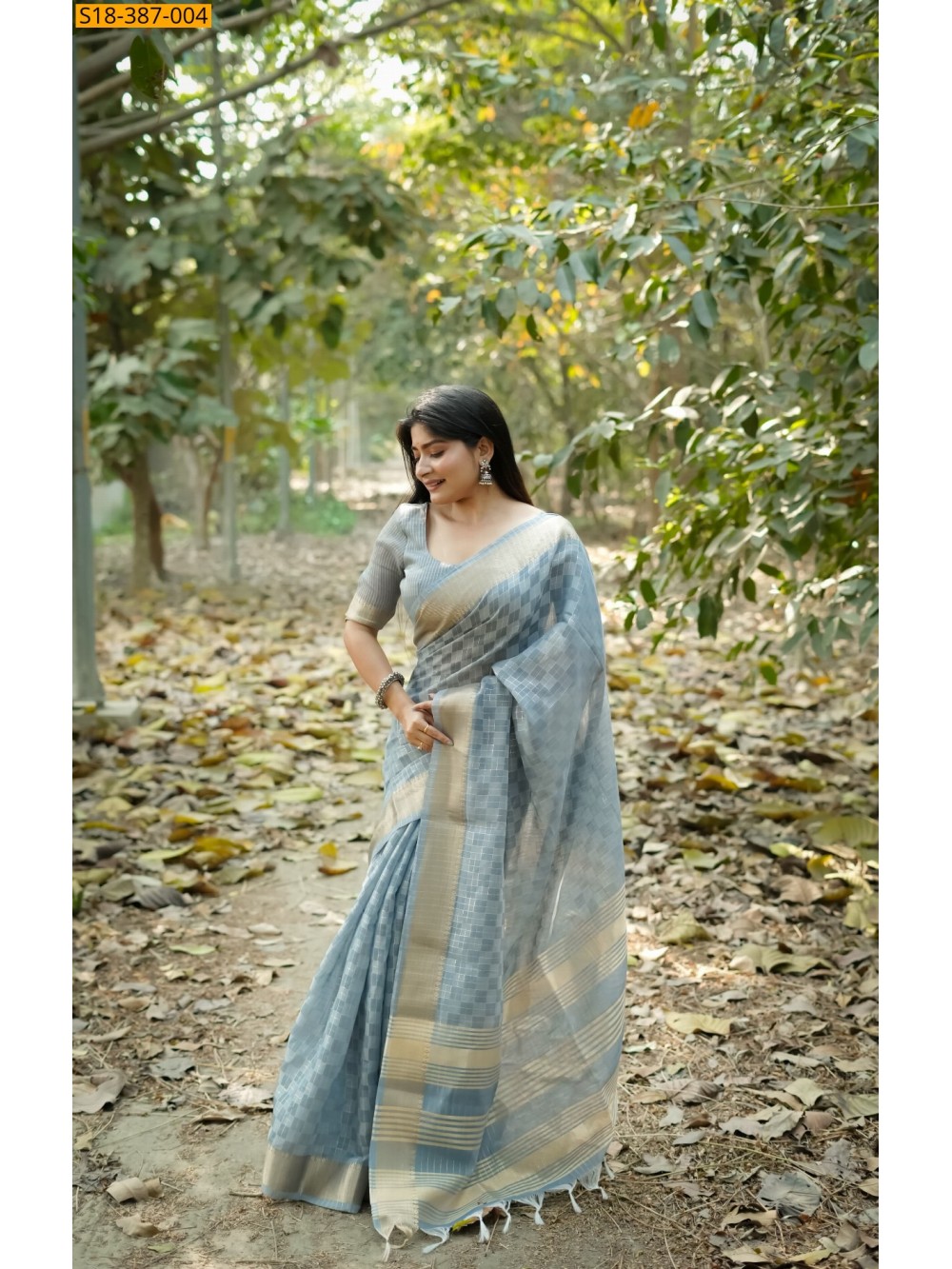 - Zari Weaving checks pattern With color shaded box pattern allover the saree