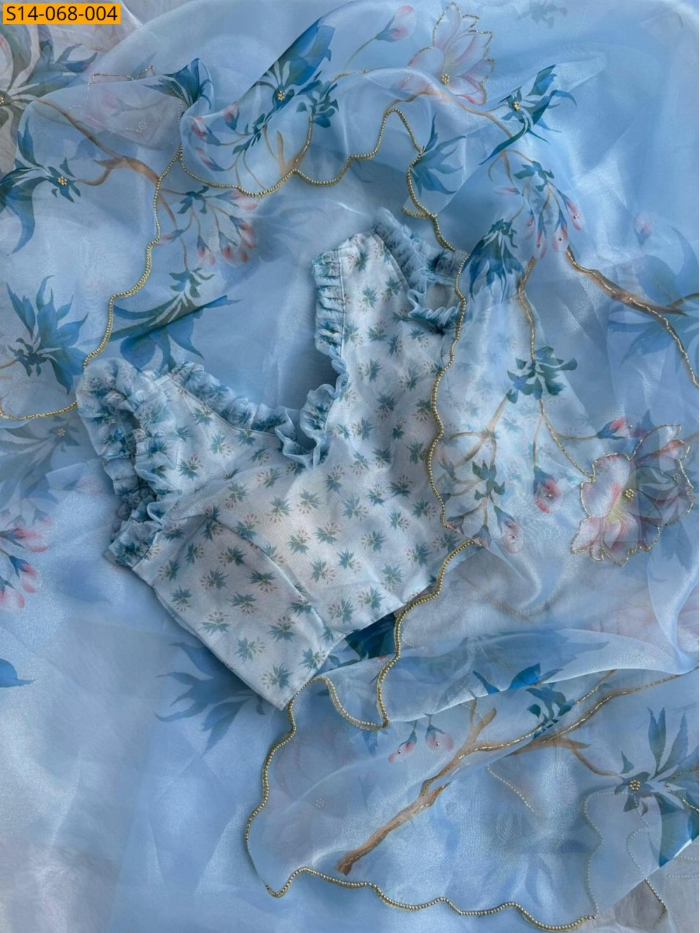 - With digital printed organza silk Blouse (UNSTICHED)
