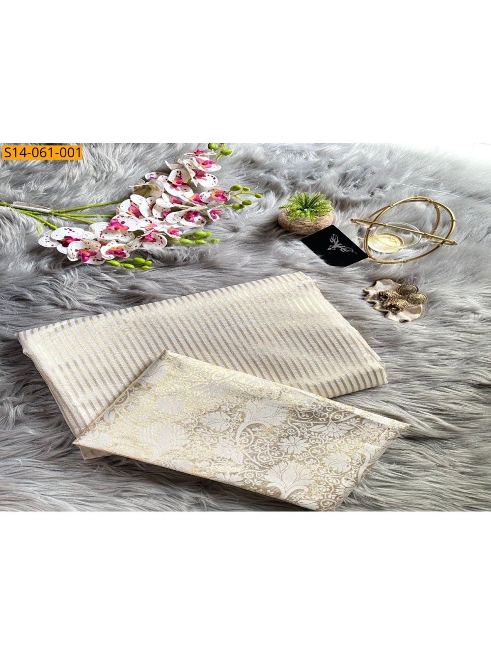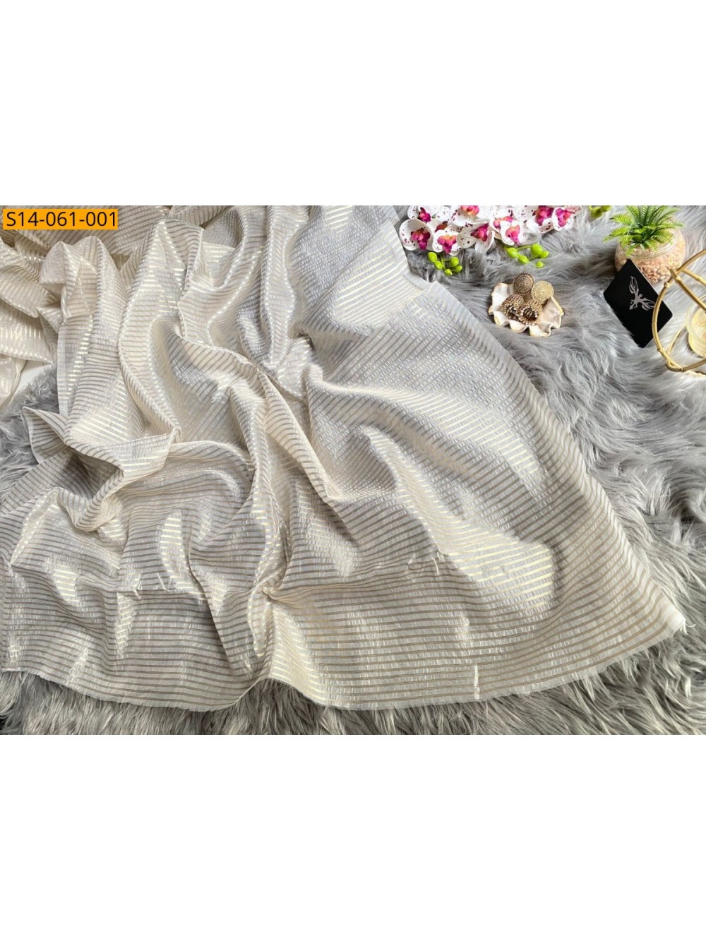 - Golden Zari weaving stripes design all over the body