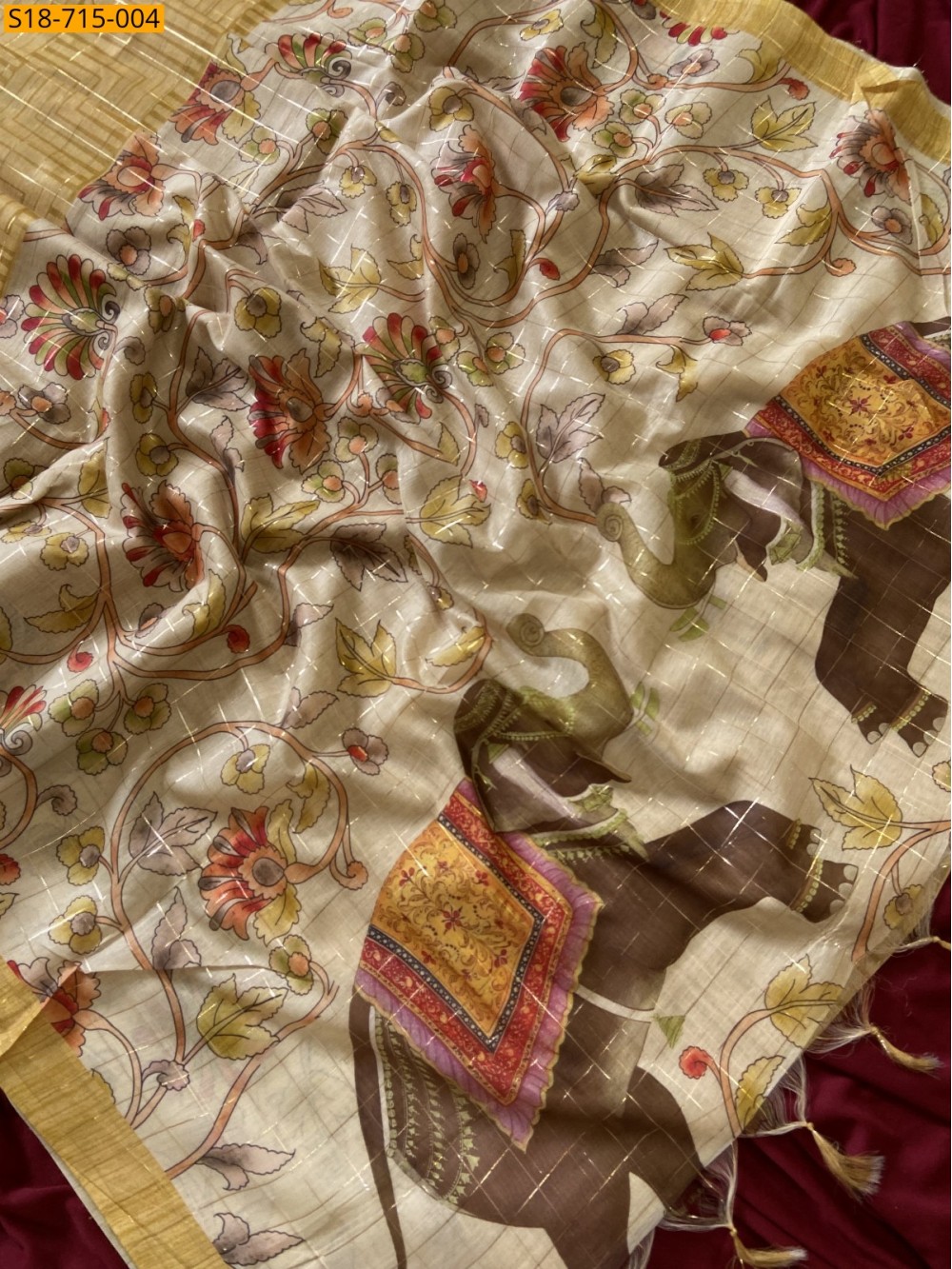 - Elephant printed pallu with tassels