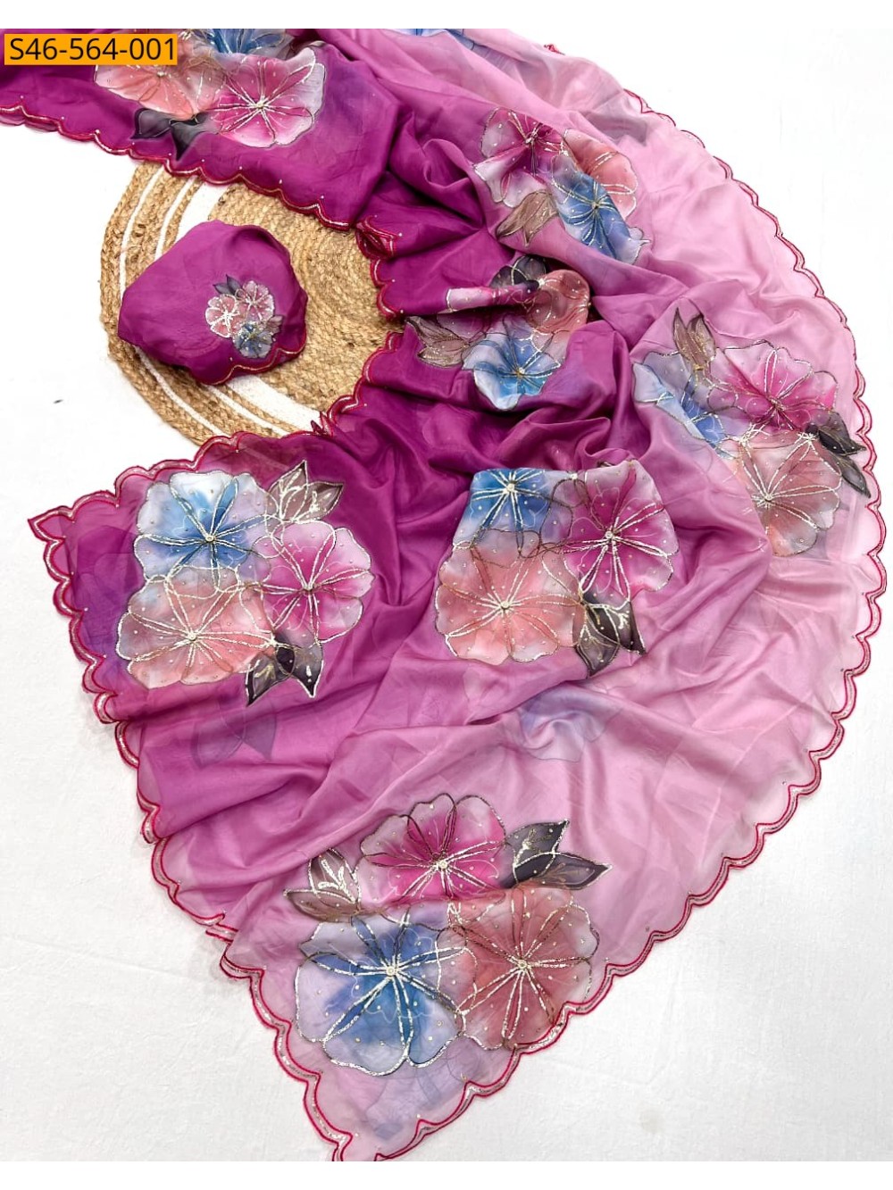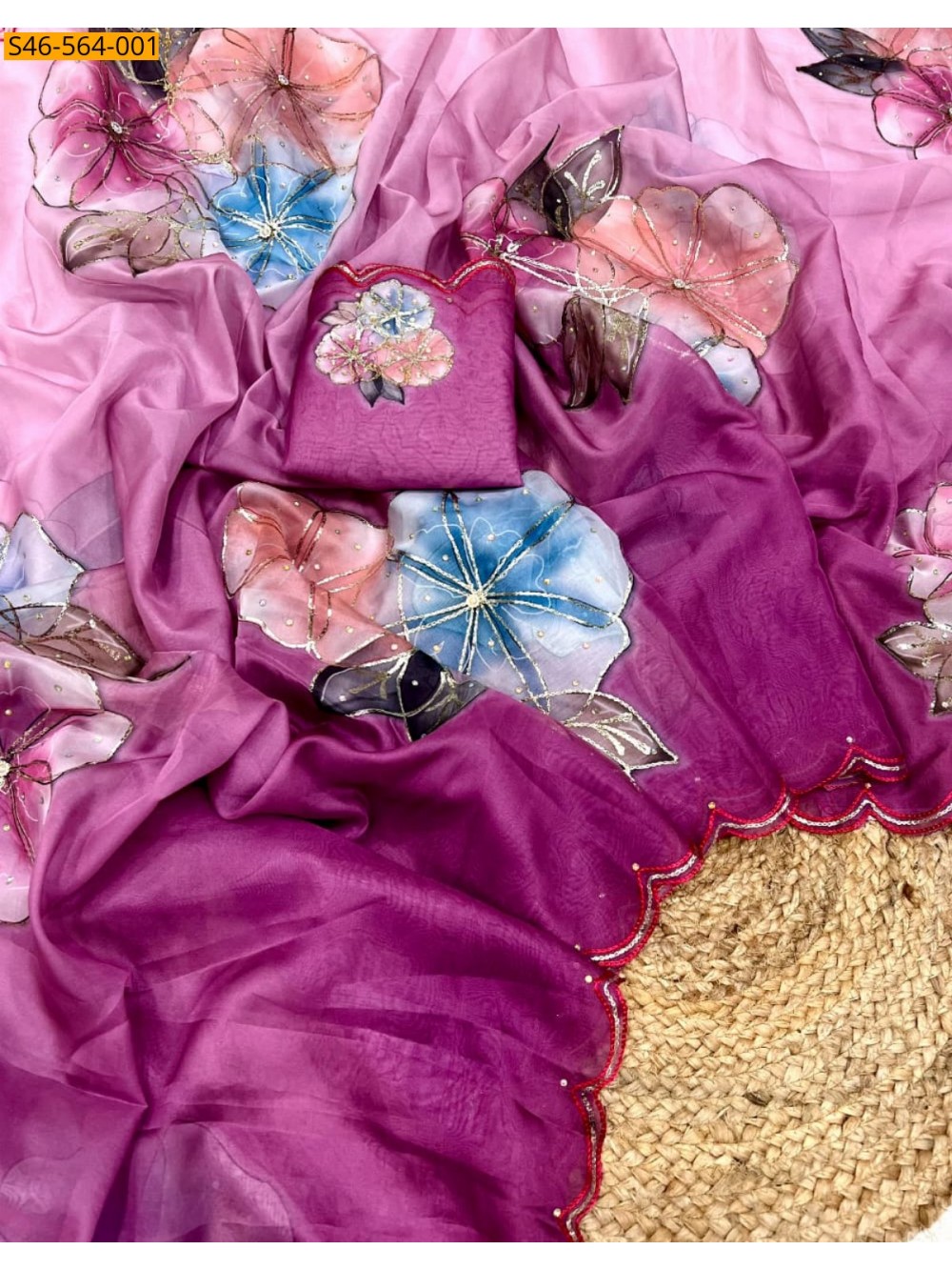 - Digital floral Printed design with ribbon work all over the saree