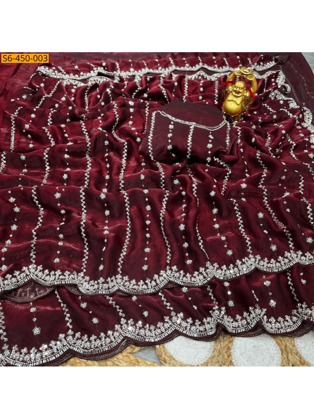 Maroon Space silk embroidery sarees