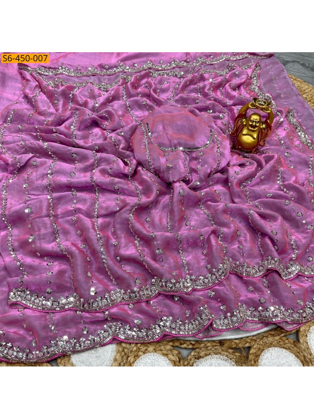 • With Space silk with beeds work blouse