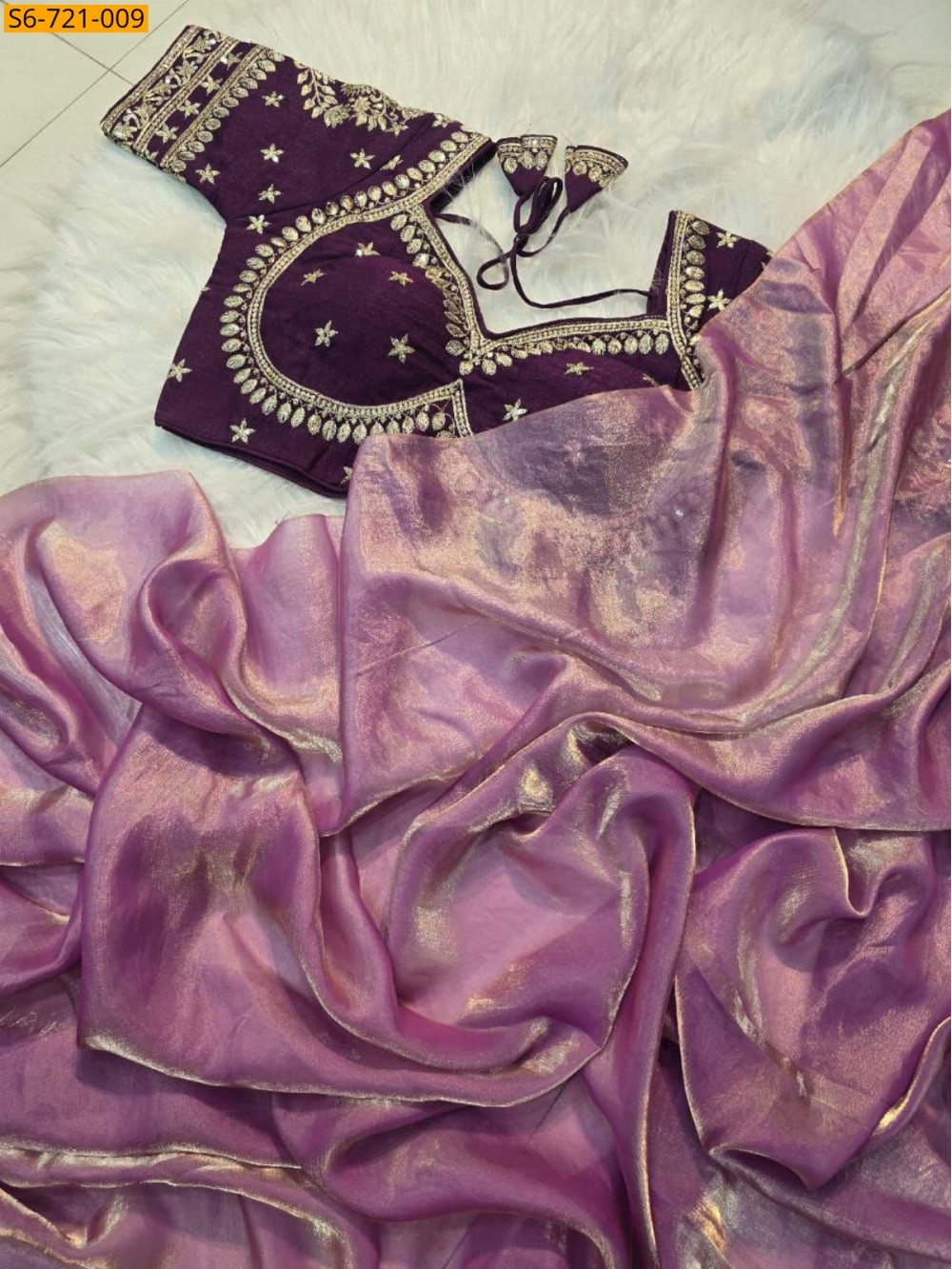 With Fully Stiched embroidery work blouse (Size upto 42)