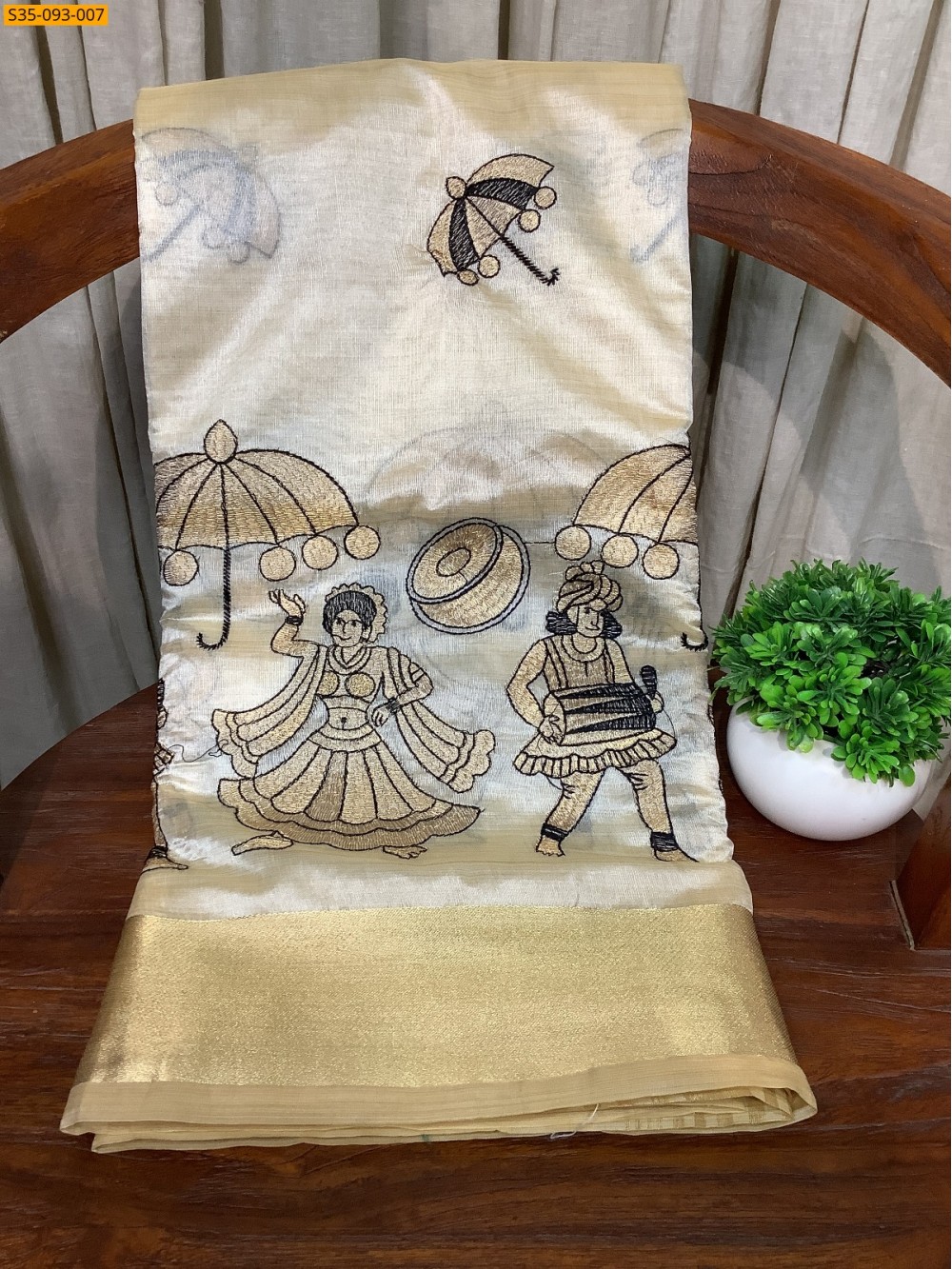 - With embroidery work