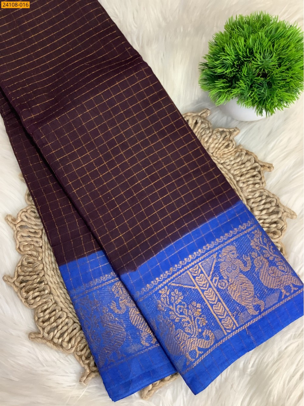 Brown Sungudi Cotton Zari kattam Sarees