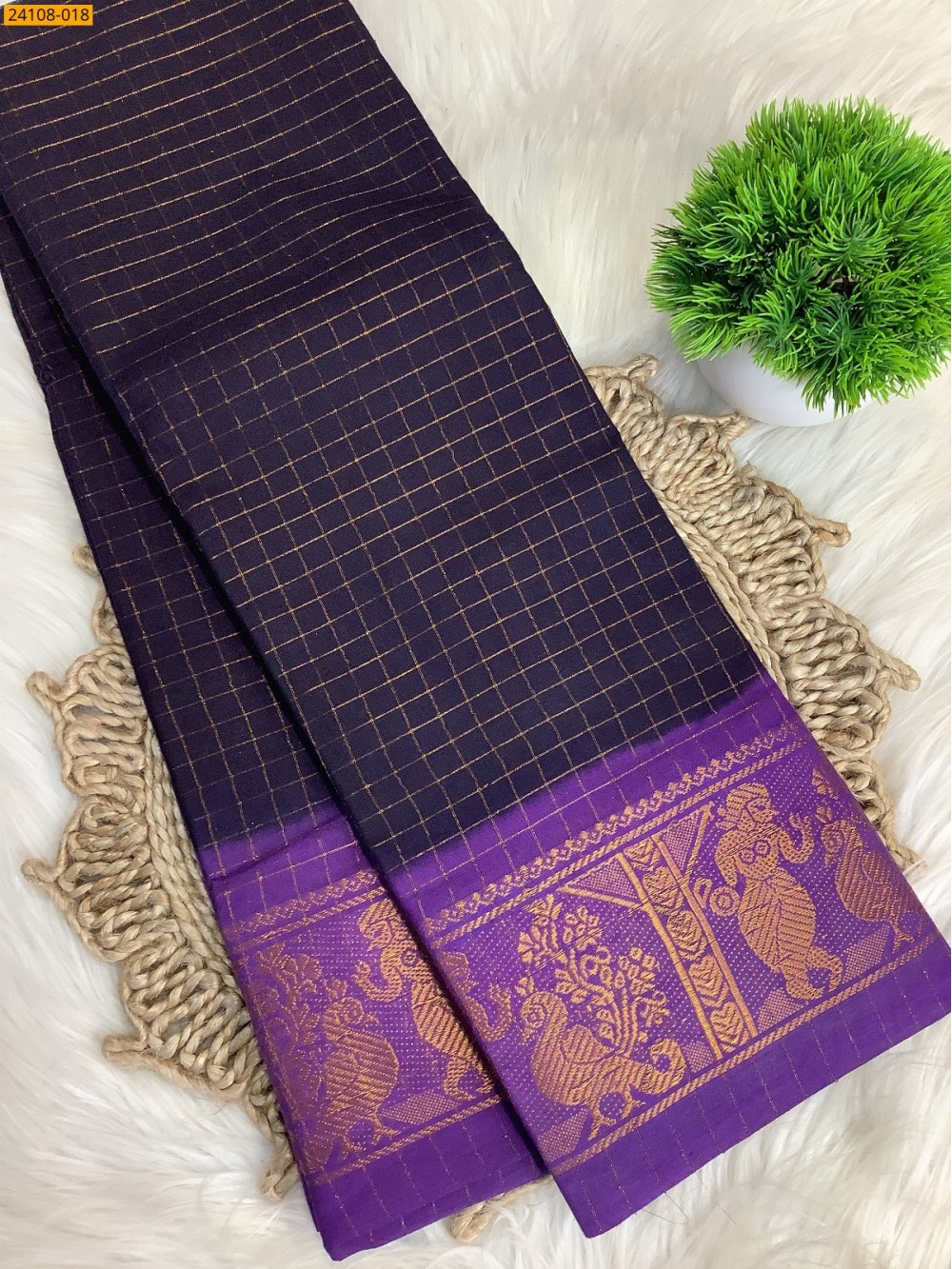 Navy Blue Sungudi Cotton Zari kattam Sarees