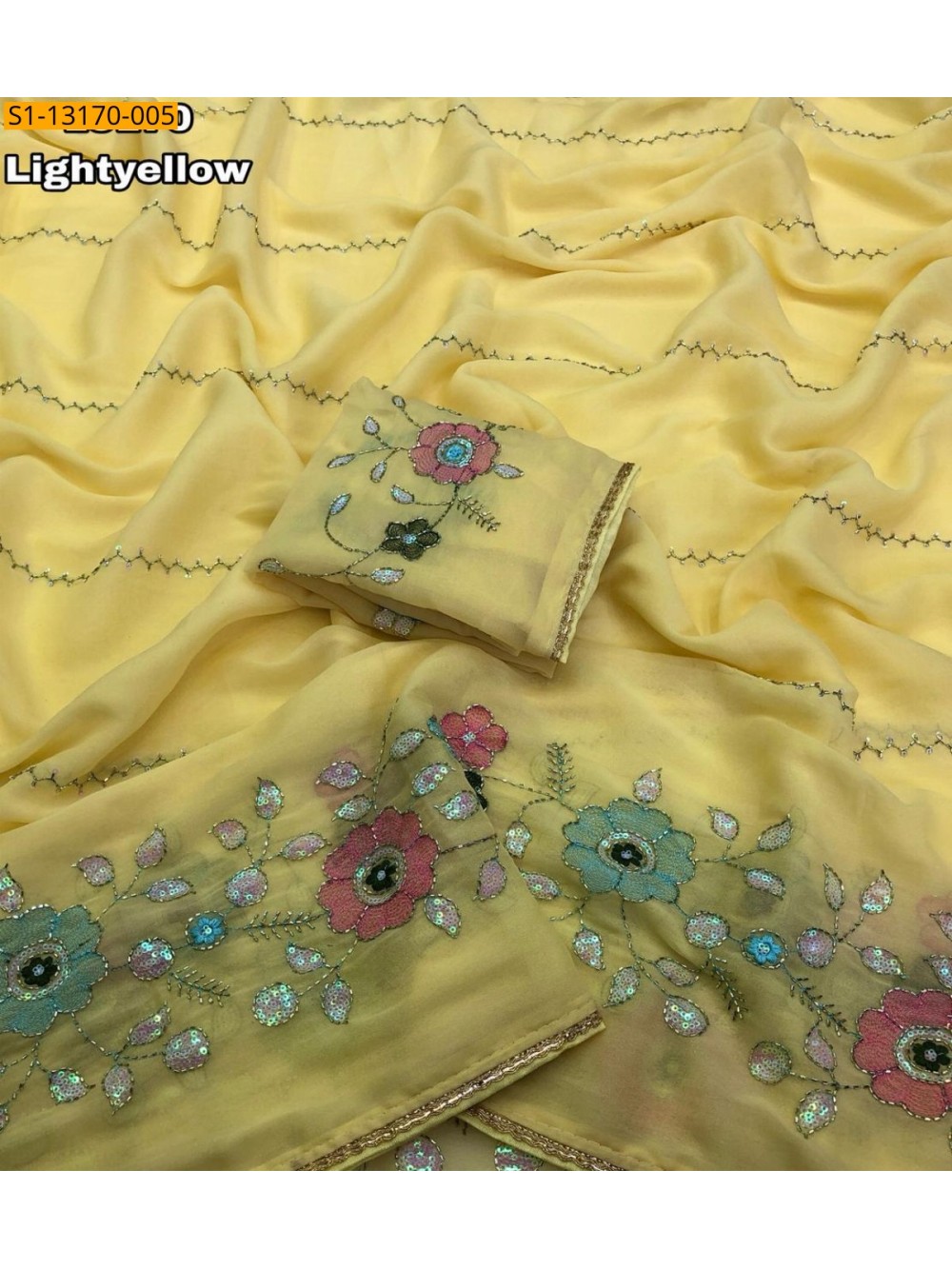 Light Yellow Star Georgette Embroidery Sarees