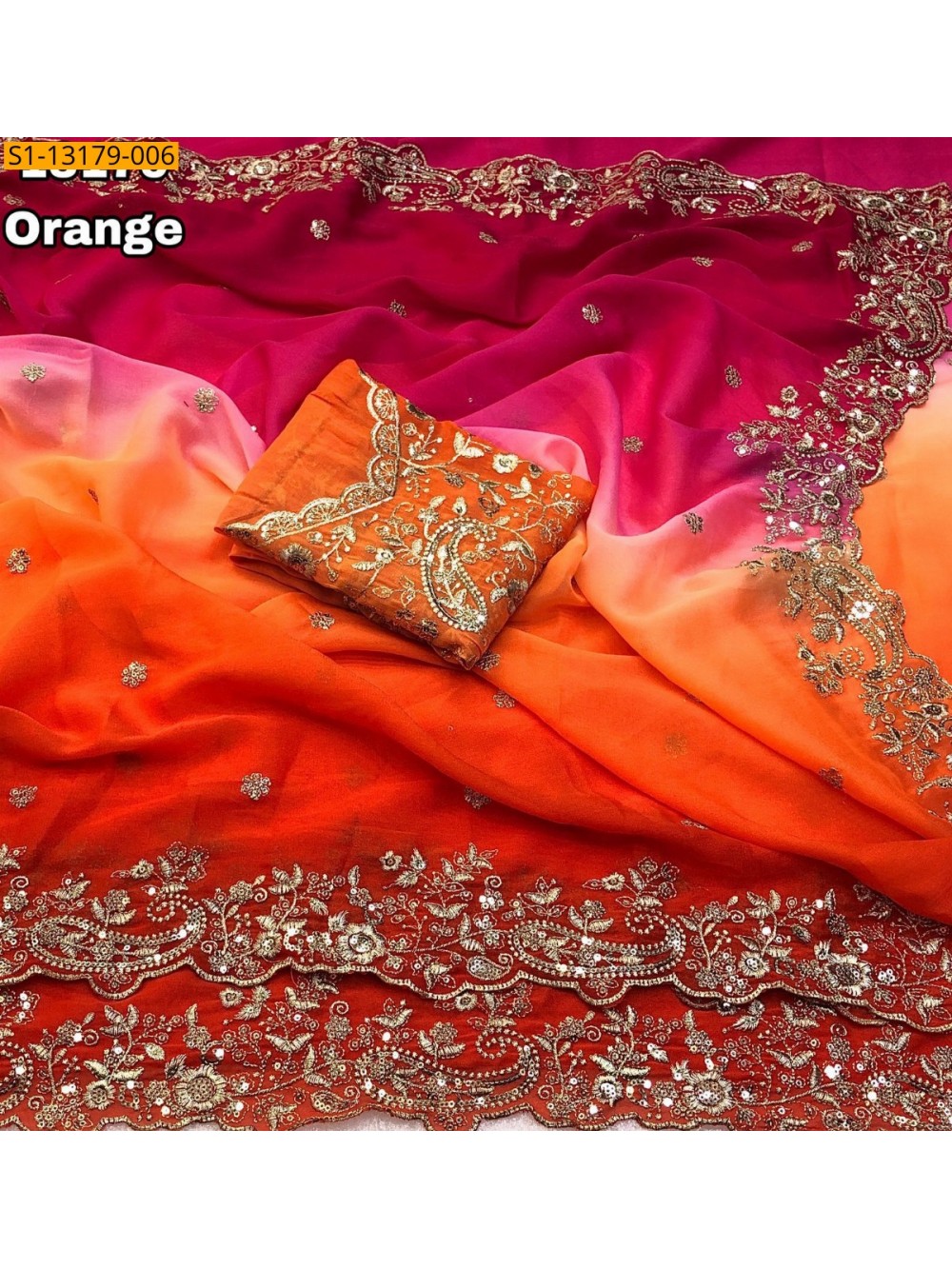 Orange Star Georgette Shaded Saree