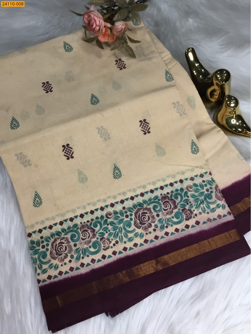 - Contrast zari border with border printed