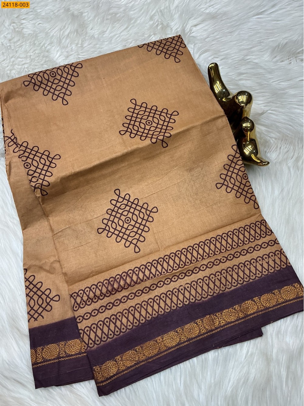 Light Brown Sungudi Cotton Printed Saree