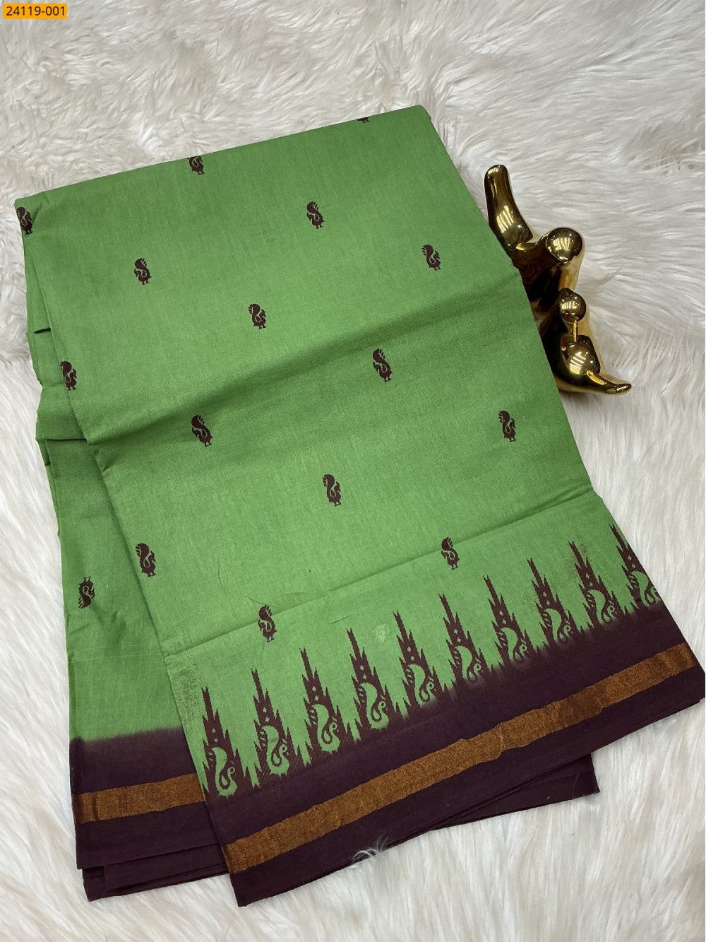Olive Green Sungudi Cotton Printed Saree