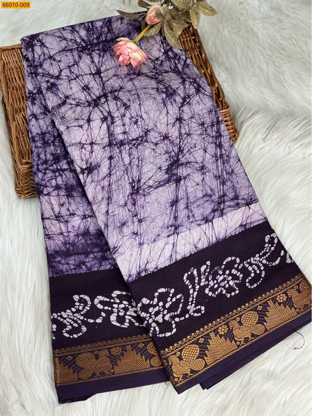 Tags: Sungudi Cotton wax printed saree
