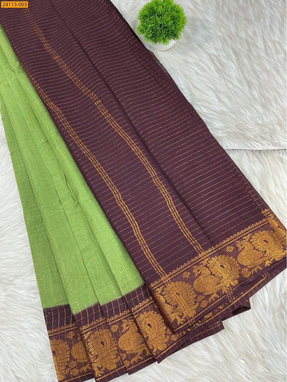 Olive Green Sungudi Cotton Zari kattam Sarees