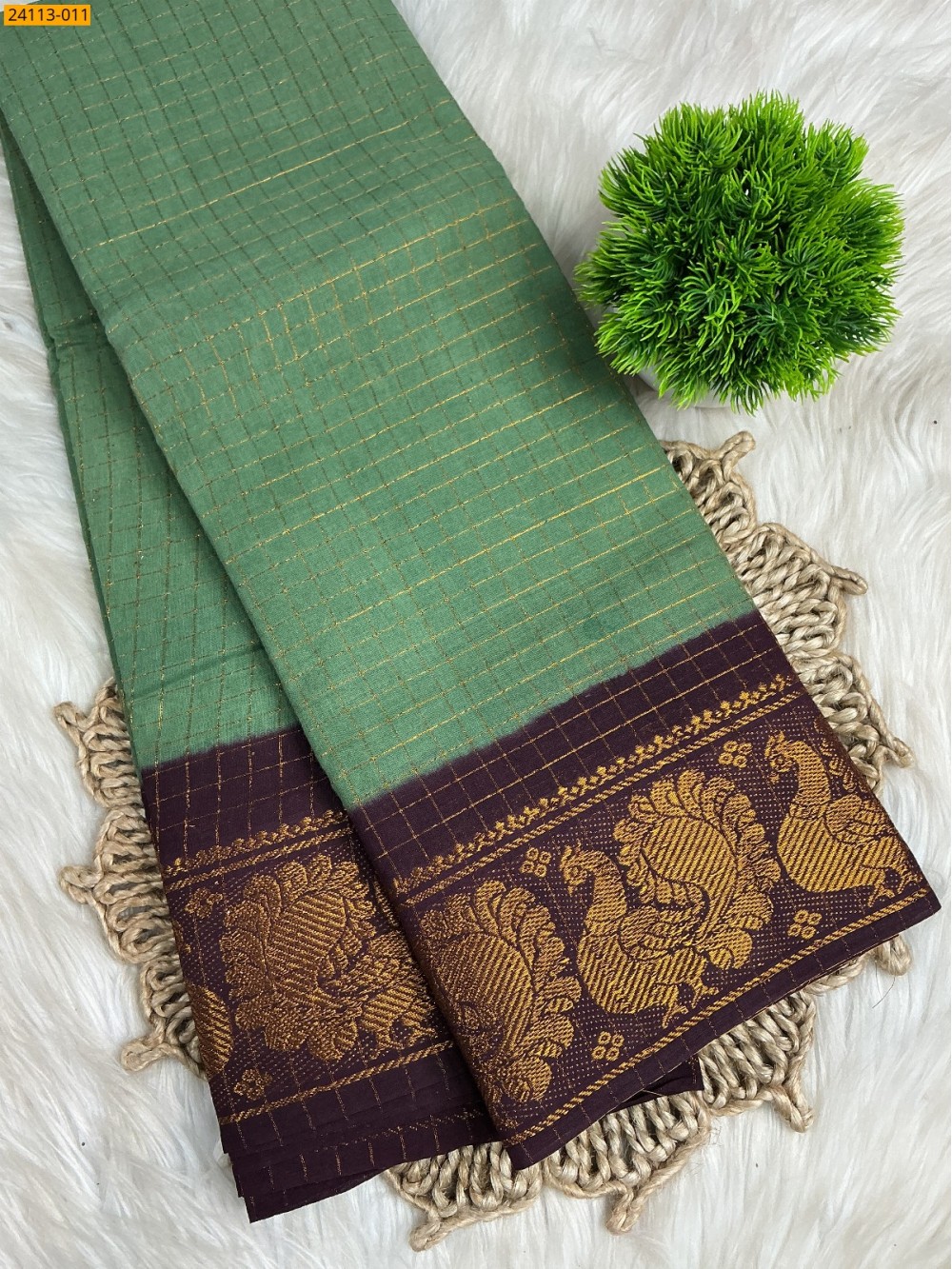 • Sungudi Cotton zari kattam Sarees