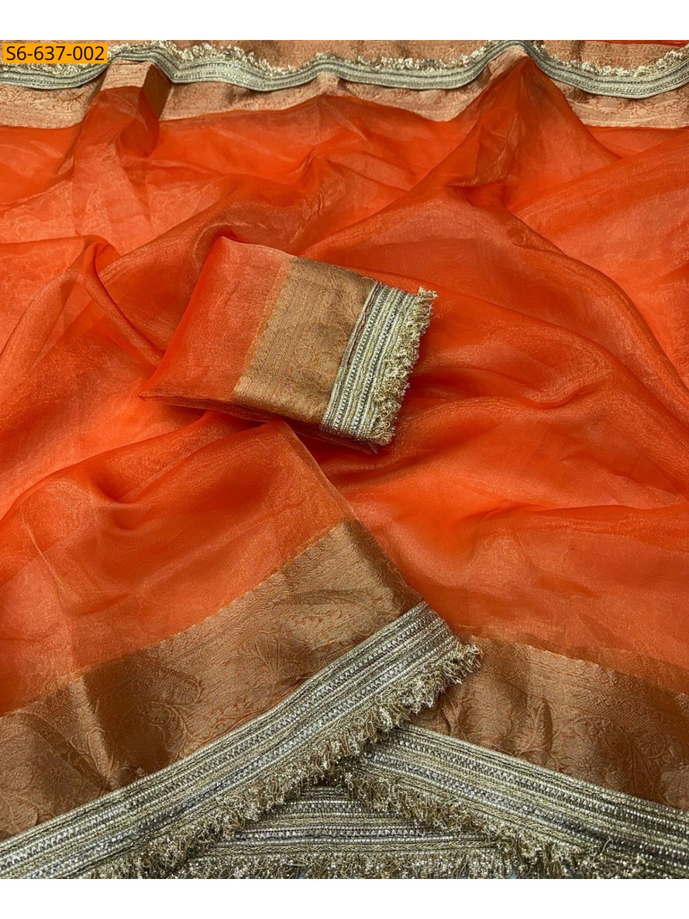 Orange Tissue Orgenza Lace Border Saree