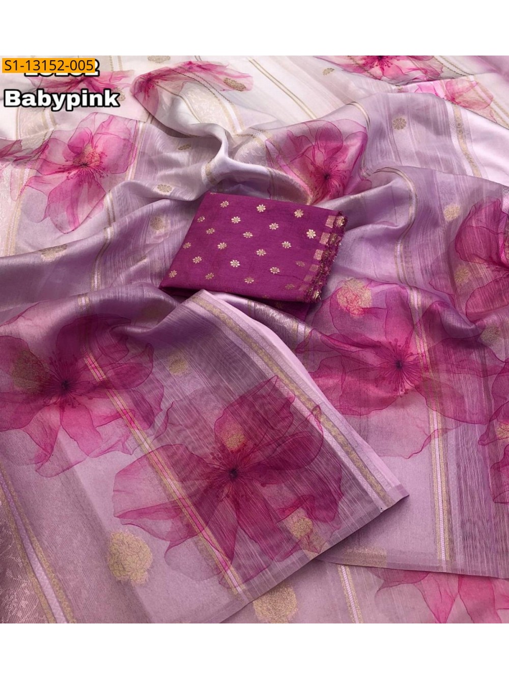 - Floral Digital Print With Gold Zari Weaving Saree