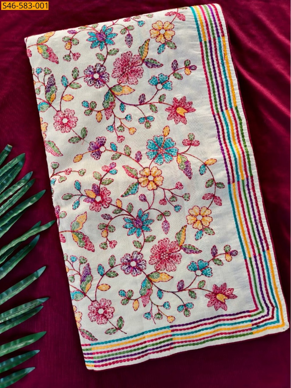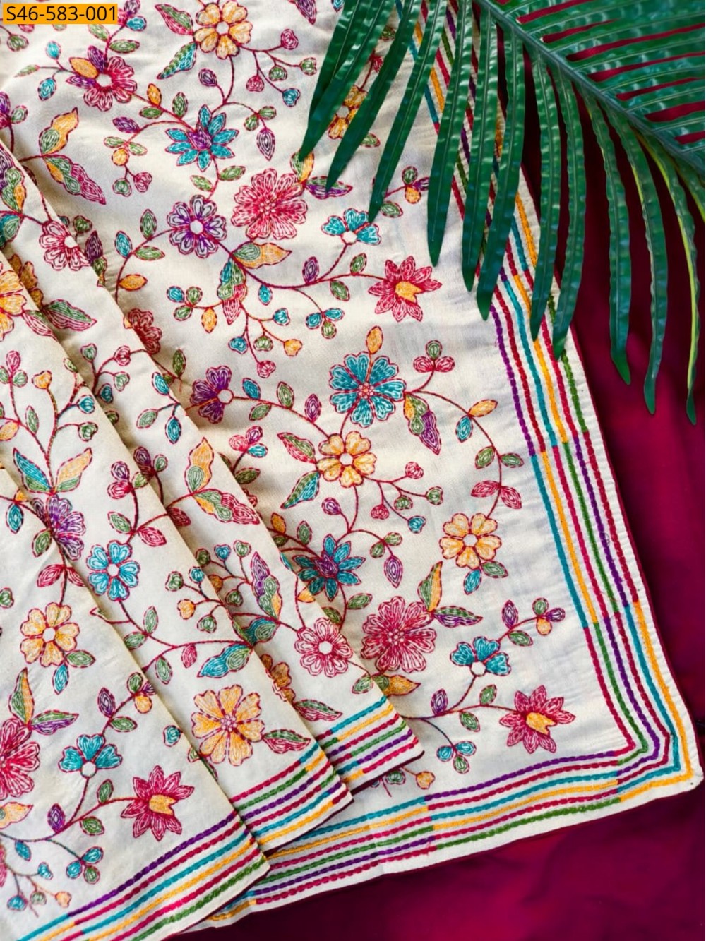 - Floral Thread Embroidery Work Allover the saree
