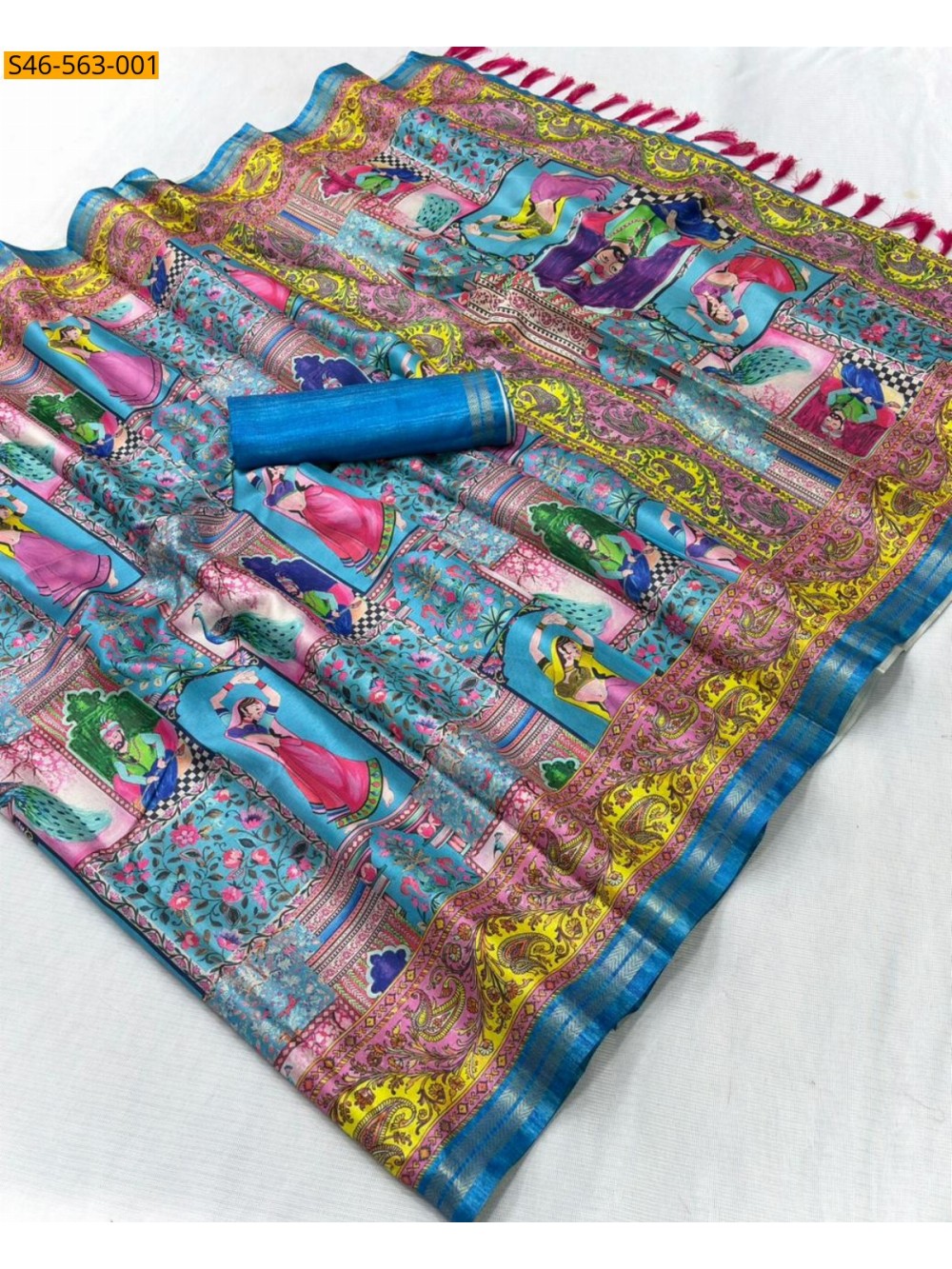 - Printed pallu with tassels