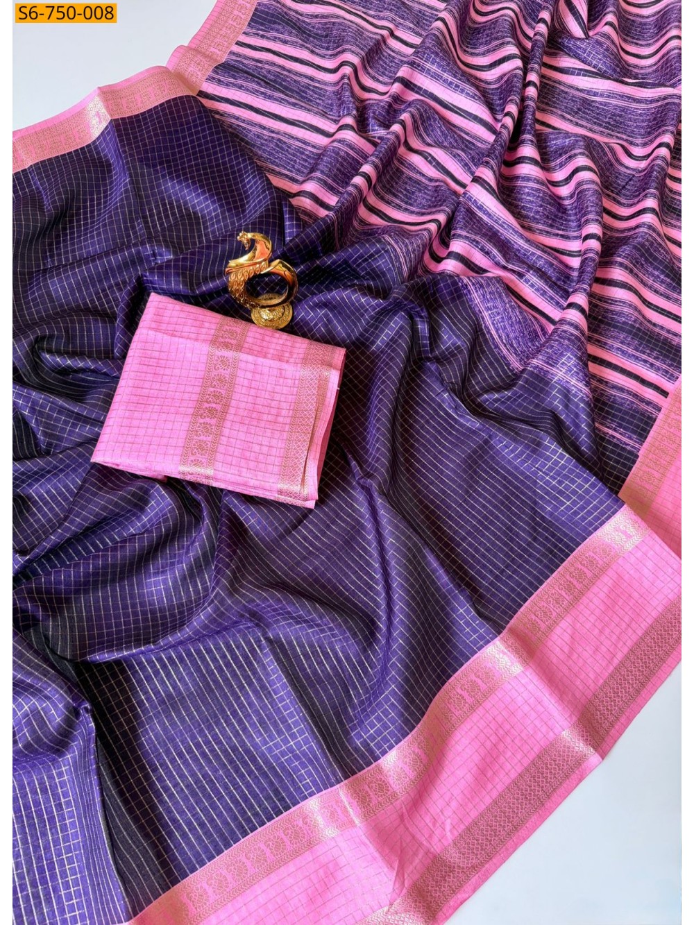 - Tussar Silk Checks Weaving Saree