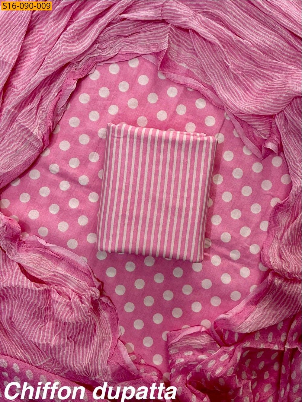 Pink Cotton suit with Chiffon dupatta