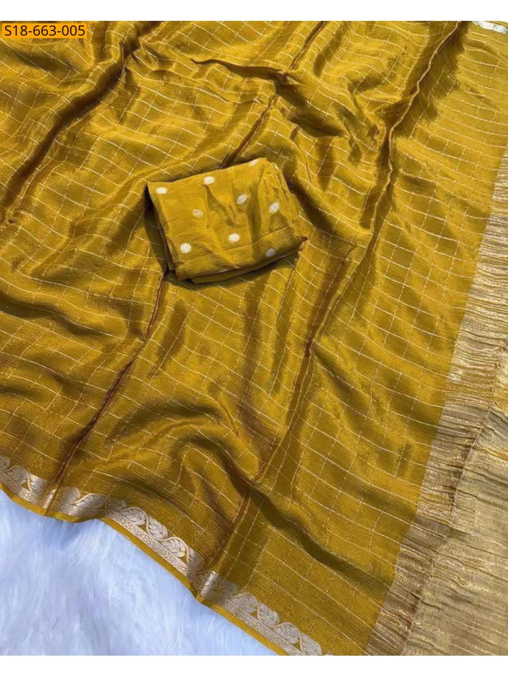 • Zari checked design all over the body