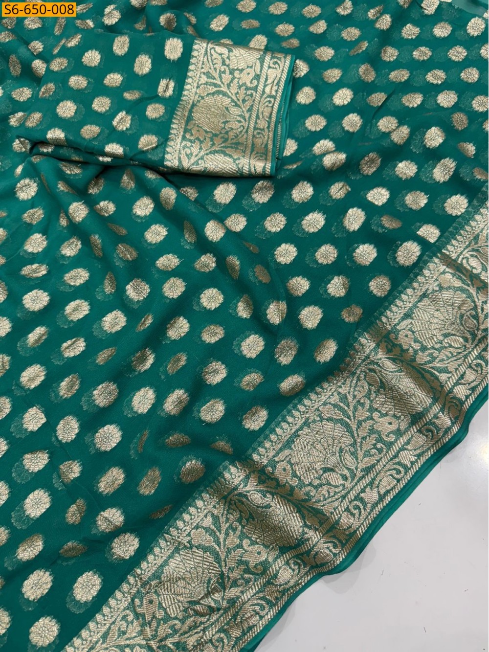 Rama Green Viscose Georgette Saree