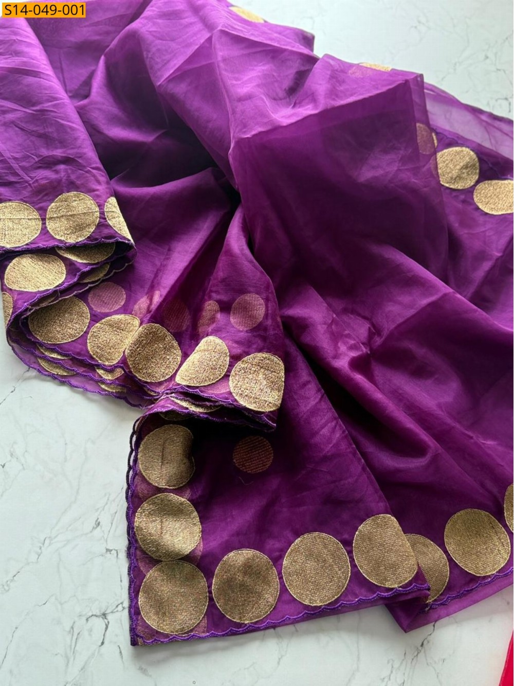 - With Blouse Running Viscose Orgenza With Small Goli Work Design For Sleeves